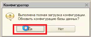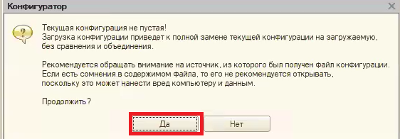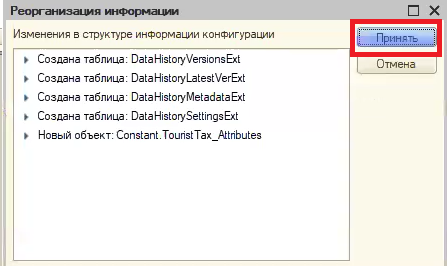В окне со списком изменений в конфигурации нажмите Принять для завершения процедуры загрузки.