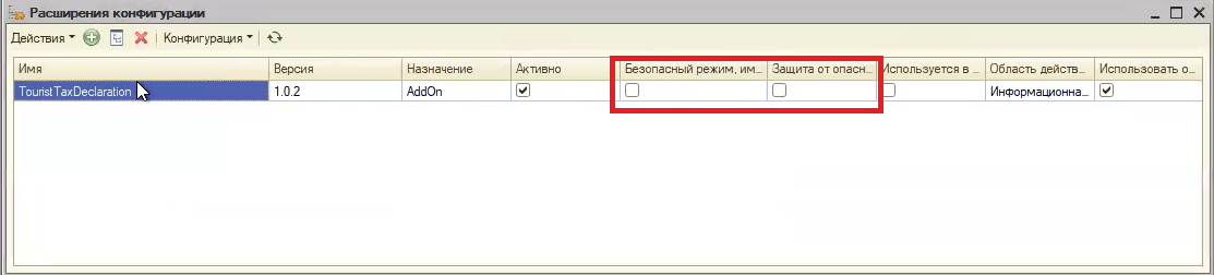 6) Снять флаги Безопасный режим, Защита от опасных действий в строке с расширением.