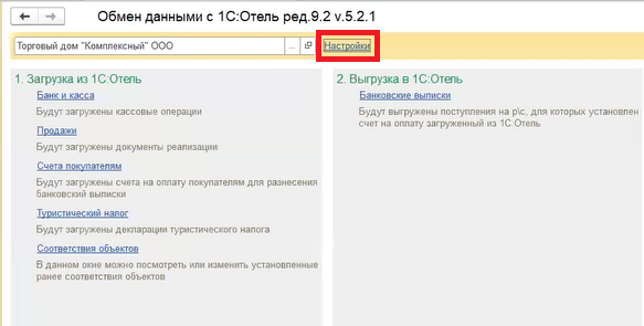 - использовать в 1С:Бухгалтерия актуальную обработку для обмена с 1С:Отель (текущая актуальная версия обработки 5.2.1);