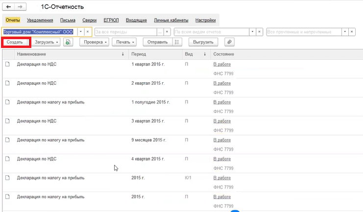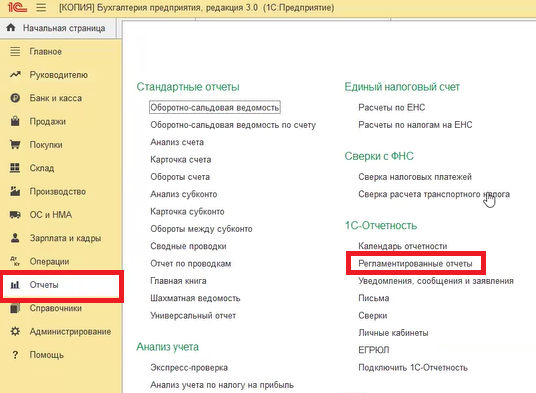 Перейдите в подсистему Отчеты/Регламентированные отчеты.