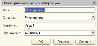 4) В открывшемся окне укажите Наименование расширения и сохраните изменения по кнопке ОК.