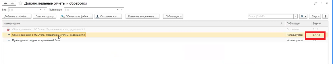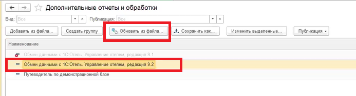 Если у вас установлена более ранняя версия обработки, обновите обработку по кнопке Обновить из файла в верхней части справочника, подгрузив актуальную версию в базу.