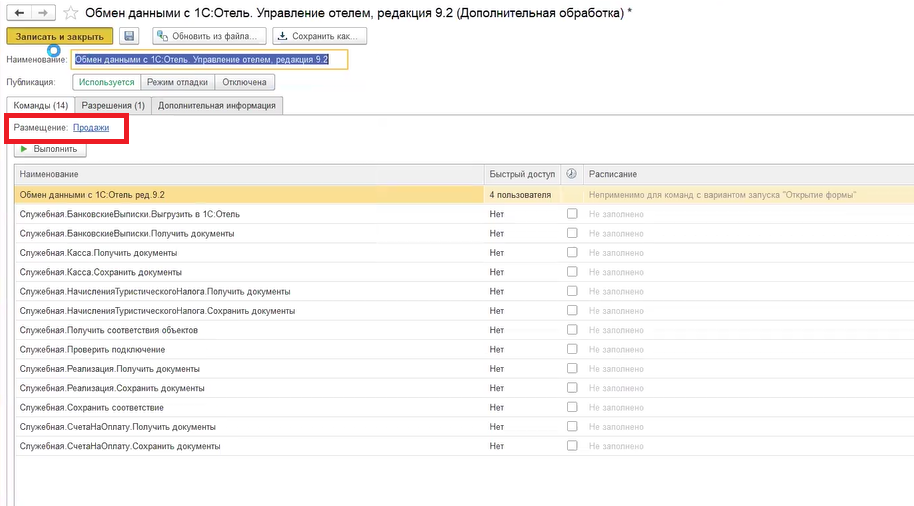 Обработка для обмена данными с 1С:Отель может располагаться в другом разделе в базе бухгалтерии. Вам необходимо определить раздел для размещения самостоятельно на этапе настройки обмена или обновления обработки (см.п. 5.1. данной инструкции).