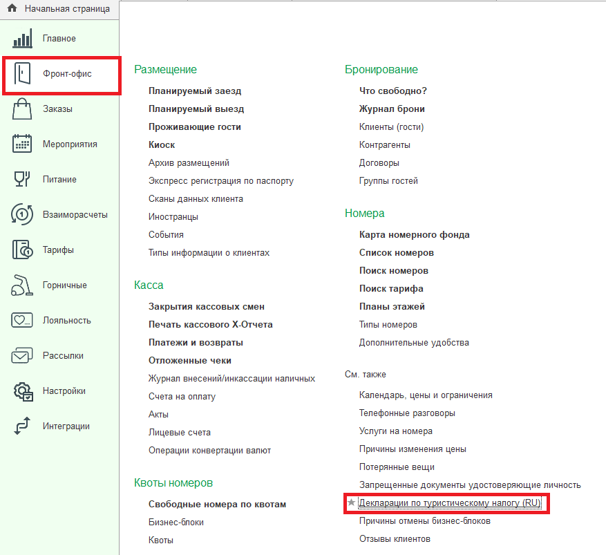 1) Перейдите в подсистему Фронт-офис/Декларации по туристическому налогу.